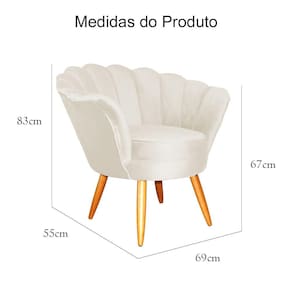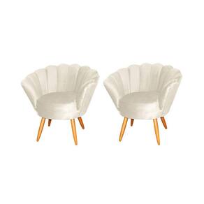 Kit 2 Poltronas Decorativa Pétala Veludo Bege Pés Madeira Ms Decor - Rosa