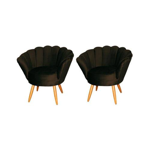 Kit 2 Poltronas Decorativa Pétala Veludo Marrom Pés Madeira Ms Decor