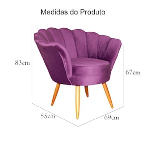 Kit 2 Poltronas Decorativa Pétala Veludo Roxo Pés Madeira Mz Decor