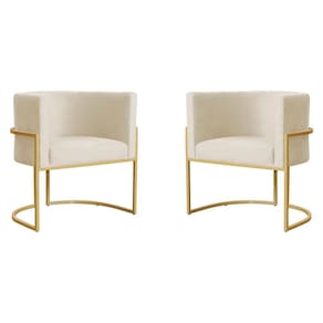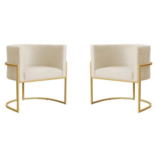 Kit 2 Poltronas Decorativa Sala de Estar Luana Base Gold Veludo Bege - Montanaris Decor
