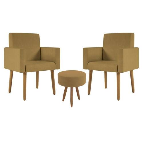 Transforme o seu ambiente com o Kit 2 Poltronas Nina + Puff Pé Palito. Este kit é a combinação perfeita de conforto, durabilidade e um design moderno, ideal para mesas de jantar, áreas de estar e até mesmo ambientes comerciais.Especificações do produtoTecido em Suede, 100% poliésterEspuma D-23 com Alta densidadePercintas Elásticas que oferecem suporte adicionalEstrutura de madeira eucalipto proveniente de reflorestamentoInformações Técnicas da PoltronaAltura: 87 cmLargura: 61 cmProfundidade: 60 cmPeso: 9,5 kgCapacidade de Suporte: O produto suporta até 100 kgProduto embaladoAltura: 61 cmLargura: 62 cmProfundidade: 55 cmPeso: 24 kgObservações ImportantesO produto tem 3 meses de garantia contra defeitos de fabricaçãoProduto possui uma embalagem segura, feita para evitar danos durante o transporteO Produto é entregue montado