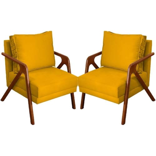 Ademais, os materiais s em sua produção permitem uma qualidade excelente, tornando ela confortável por sua espuma D-23, bonita por seu acabamento em tecido suede e forte por seus pés e braças em madeira maciça ( suporta até 150 kg).