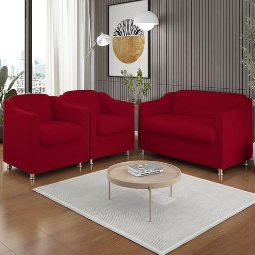 Kit 2 Poltronas Decorativa Tilla + Namoradeira Sala De Estar Cor:vermelho