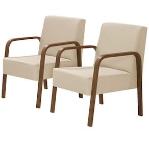 Kit 2 Poltronas Decorativas 1 Lugar Luna Braço Madeira D Salla Suede - Bege