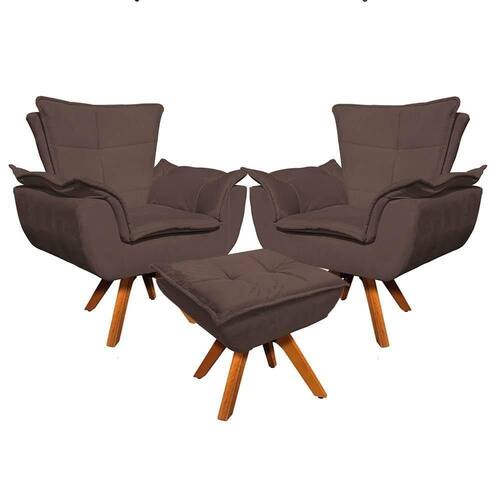 Altura: 91 cm | AssemblyRequired: Sim, sugerimos a contratação do nosso serviço de montagem (para os CEPs em que o serviço está dispon | Color: Marrom | ColorFamily: Marrom | ColorSimple: Marrom | ColorSupplier: Marrom | Cor: Marrom | Gênero: Unisex | Largura: 80 cm | Manual: Sim | Marca: Ibiza | Material: Madeira de Eucalipto | MaterialFamily: Madeira de Eucalipto | Model: Opla | Origem: | OriginCountry: | OriginState: PR | Peso: 53 kg | Peso Suportado: 120 kg | ProductContents: 2 Poltronas, 1 Puff | ProductHeight: 91 | ProductInstructions: Produto para uso em ambiente interno, nao devendo ficar exposto ao sol, calor e umidade excessivos. | ProductLength: 62 | ProductWarranty: 90 dias após o do produto | ProductWeight: 53 | ProductWidth: 80 | Profundidade: 62 cm | Requere montagem: Sim | SizeDescription: 91 x 80 x 62 cm | SupplierSimpleName: Kit 2 Poltronas Decorativas Base Giratória Giromad com Puff Opla Suede Marrom - Ibiza | Tipo de Garantia: Fabricante