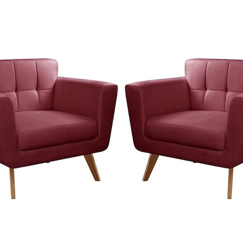 Kit 2 Poltronas Decorativas Bruna Sala de Estar Quarto Recepção Bordô - Vermelho
