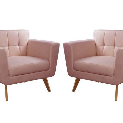 Kit 2 Poltronas Decorativas Bruna Sala de Estar Quarto Recepção Rose - Rosa