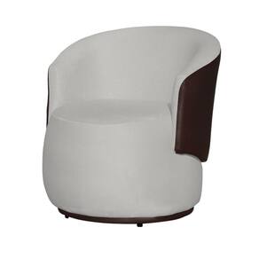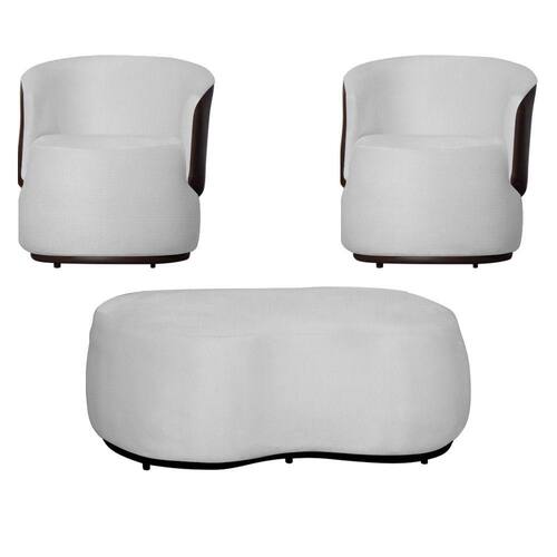 Kit 2 Poltronas Decorativas e 1 Puff Grande Design Orgânico Beatriz Suede Composê Corino Marrom - Estopar - Branco