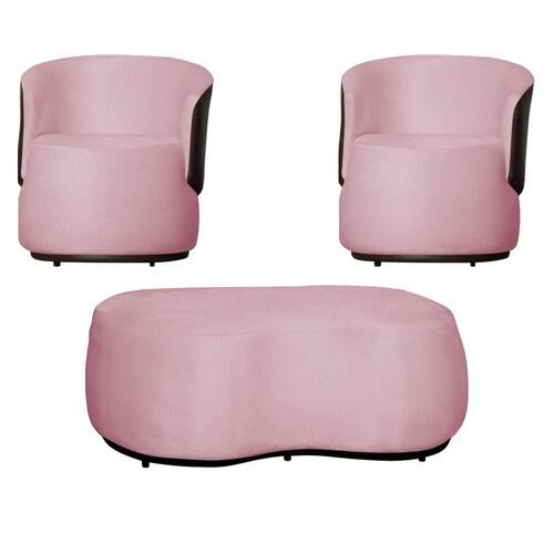 Kit 2 Poltronas Decorativas e 1 Puff Grande Design Orgânico Beatriz Suede Composê Corino Marrom - Estopar - Rosa