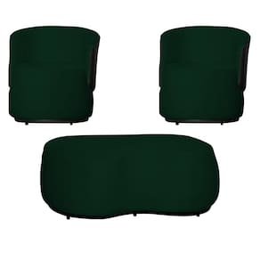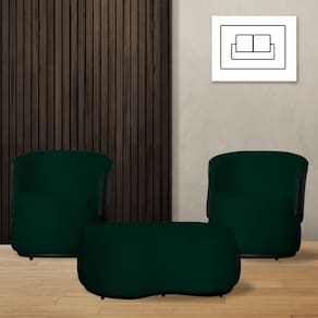 Kit 2 Poltronas Decorativas e 1 Puff Grande Estilo Orgânico Beatriz Suede Composê Corino Preto - Estopar - Verde