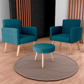 As poltronas possuem estrutura resistente, estofamento macio e pés em madeira no estilo retrô, garantindo durabilidade e estilo atemporal. Já o puff oferece apoio extra para os pés, completando a experiência de conforto.