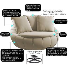 Kit 2 Poltronas Decorativas Giratória Sala de Estar Afrodite Linho Bege - Gran Belo tem um design todo delicado e único, cada detalhe foi desenvolvido pensando exatamente em oferecer qualidade, beleza e conforto para você e toda Família, imagine esse charme de Poltrona no seu ambiente agregando ainda mais estilo e beleza á sua decoração, além disso, proporciona uma maciez inigualável!