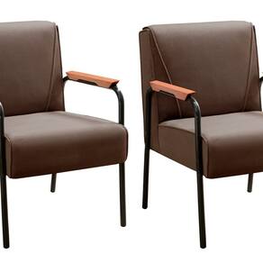 Kit 2 Poltronas Decorativas Jade Braços Fixo Marrom