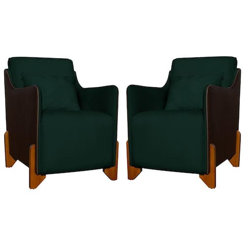 Eleve instantaneamente o charme e o conforto de qualquer espaço com o nosso Kit de 2 Poltronas Decorativas Heloisa, uma fusão perfeita de estilo e funcionalidade. Projetadas para se complementarem, essas poltronas oferecem não apenas assentos aconchegantes, mas também uma estética visualmente envolvente que transformará seu ambiente. Confeccionadas com materiais de alta qualidade, estas poltronas proporcionam uma experiência tátil luxuosa. O revestimento em tecido veludo com corino, complementa a estrutura robusta, garantindo durabilidade e conforto a longo prazo. Disponíveis em uma variedade de cores, estas poltronas permitem uma personalização que atende ao seu gosto pessoal. Seja uma paleta neutra para um visual elegante e discreto ou cores vibrantes para um toque mais ousado, este kit adapta-se à sua visão de design. Além de serem atraentes visualmente, essas poltronas oferecem funcionalidade dupla. Use-as como poltronas de destaque na sala de estar, como um recanto aconchegante no quarto ou até mesmo como um conjunto elegante para a área de recepção no escritório. Detalhes coordenados, como pés de madeira na cor castanho, costuras rebatidas e a delicada almofada, unificam o visual do kit, adicionando um toque sofisticado. Cada poltrona é um reflexo da atenção meticulosa aos detalhes, resultando em uma estética coesa e elegante. A forma ergonômica das poltronas proporciona suporte ideal, convidando-o a relaxar e desfrutar de momentos de tranquilidade. Seja lendo um livro, assistindo TV ou simplesmente relaxando, este kit de poltronas é um convite ao conforto inigualável. É a escolha perfeita para quem busca uma transformação completa e harmoniosa em qualquer ambiente.