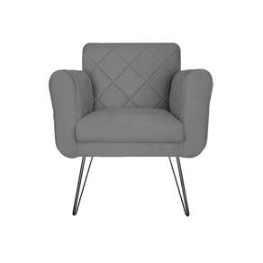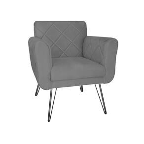 Kit 2 Poltronas Decorativas Para Quarto Closet Pés de Ferro Isabella Suede Cinza - LM DECOR