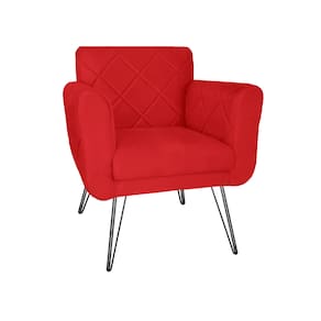 Kit 2 Poltronas Decorativas Para Quarto Closet Pés de Ferro Isabella Suede Vermelho - LM DECOR