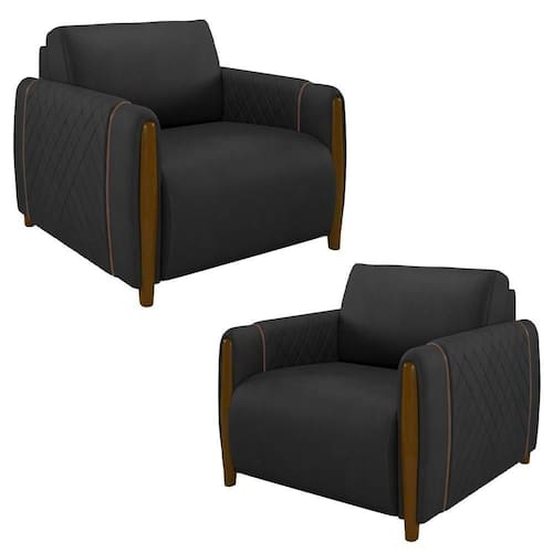Para quem busca elegância e sofisticação aliados à funcionalidade, precisa conhecer o Kit 2 Poltronas Decorativas Amaranto PU Preto, da Mpozenato. Com um design clássico, essa poltrona para sala combina materiais e texturas que criam um produto atemporal, enquanto os detalhes dos braços em tressê agregam delicadeza e charme.