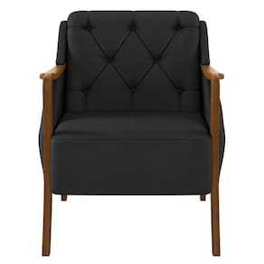 Essa poltrona para sala conta com um design clássico aliado ao contemporâneo para atender todos os requisitos de bom gosto e qualidade. Isso é possível graças a combinanação de materiais e texturas como a madeira dos braços e o revestimento do estofado. Além disso, as bordas, braços e pés curvos juntamente com a costura capitonê do completam a lista de adjetivos.