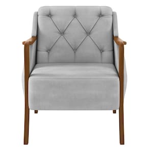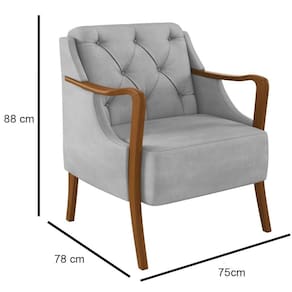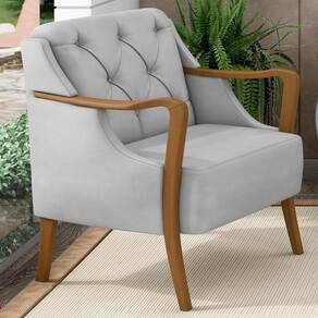 Essa poltrona para sala conta com um design clássico aliado ao contemporâneo para atender todos os requisitos de bom gosto e qualidade. Isso é possível graças a combinanação de materiais e texturas como a madeira dos braços e o revestimento do estofado. Além disso, as bordas, braços e pés curvos juntamente com a costura capitonê do completam a lista de adjetivos.