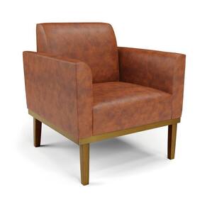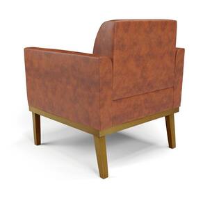 Kit 2 Poltronas Decorativas Pés Fixo Em Madeira Castanho Pu Nozes - Marrom