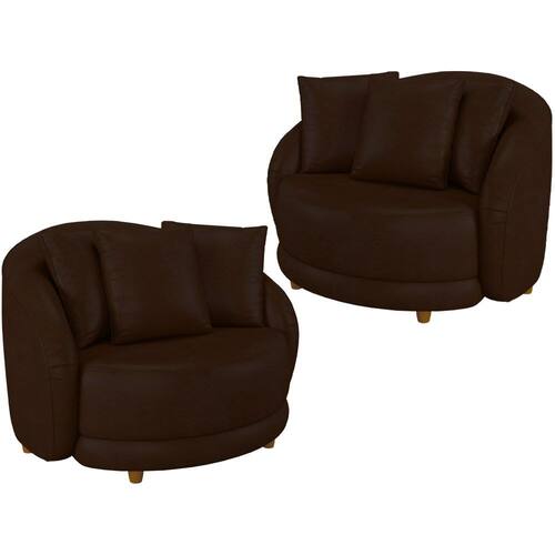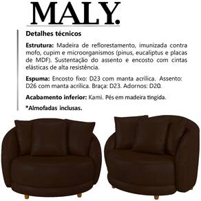 Kit 2 Poltronas Decorativas Pes Madeira Maly Corano, ideal para deixar seu ambiente com um design moderno e versátil, sem abrir mão da qualidade e conforto. Estrutura em madeira de reflorestamento (pinus, eucaliptos e placas de MDF) e cintas elásticas de alta resistência. Compostas por madeira imunizada contra mofo, cupim e microrganismos, revestimento em tecido corano, encosto fixo em espuma D-23 com manta acrílica, assento em espuma D-26 com manta acrílica, braça em espuma D-23, adornos em espuma D-20, almofadas decorativas com enchimento em fibra, revestida com kami, acabamento inferior em kami e 4 pés em madeira tingida. São perfeitas para acomodar visitas e convidados, ideal para ser utilizada em salas, hall de entrada e escritórios. Este móvel chegará na sua casa separado em 02 volumes.