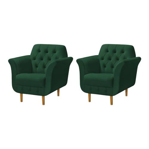 Kit 2 Poltronas Decorativas Pés Palito em Madeira Playa Veludo Verde