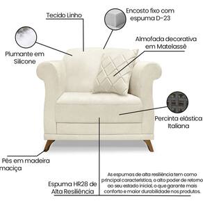 Modelo: Kit 2 Poltronas Decorativas Retrô Polo Linho Pés: Madeira Maciça Assento: Fixo com espuma D23 e plumante em silicone Encosto: Fico com percintas elásticas italiana, espuma HR28 e plumante em silicone Sistema de Montagem: Necessário fixar os pés