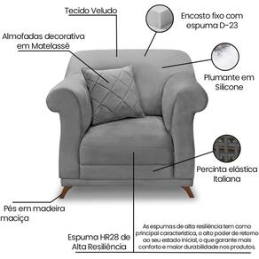 Modelo: Kit 2 Poltronas Decorativas Retrô Polo Veludo Pés: Madeira Maciça Assento: Fixo com espuma D23 e plumante em silicone Encosto: Fico com percintas elásticas italiana, espuma HR28 e plumante em silicone Sistema de Montagem: Necessário fixar os pés