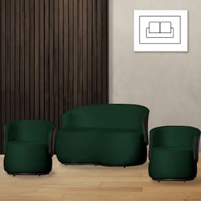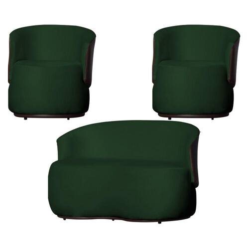 Kit 2 Poltronas e 1 Namoradeira Decorativa Orgânica Beatriz Veludo Composê Corino Marrom - Estopar - Verde