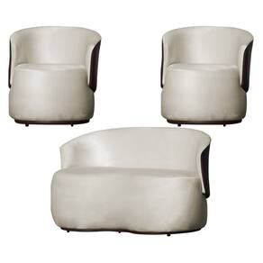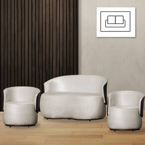 Kit 2 Poltronas e 1 Namoradeira Decorativa Orgânica Beatriz Veludo Composê Corino Marrom - Estopar - Bege