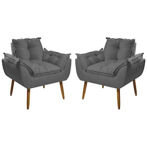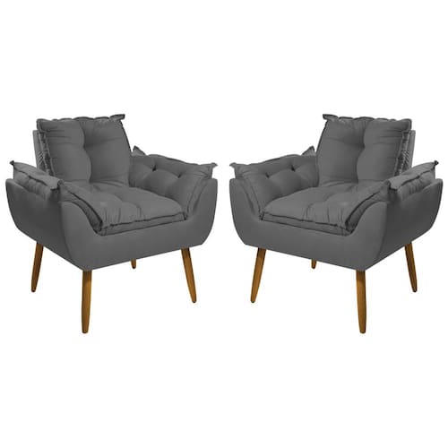 Kit 2 Poltronas e 1 Namoradeira Opala Suede com Pés Palito - Cinza