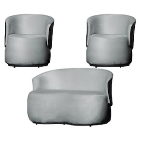 Kit 2 Poltronas e 1 Namoradeira Orgânica Beatriz Veludo Composê Corino Preto - Estopar - Prata