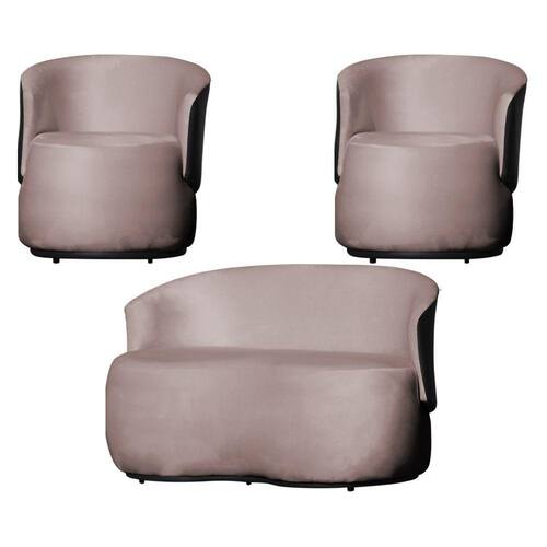 Kit 2 Poltronas e 1 Namoradeira Orgânica Beatriz Veludo Composê Corino Preto - Estopar - Rosê