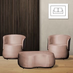 Kit 2 Poltronas e 1 Puff Grande Design Orgânico Beatriz Veludo Composê Corino Marrom - Estopar - Rosa
