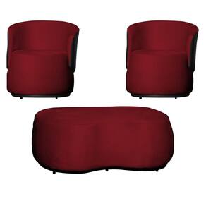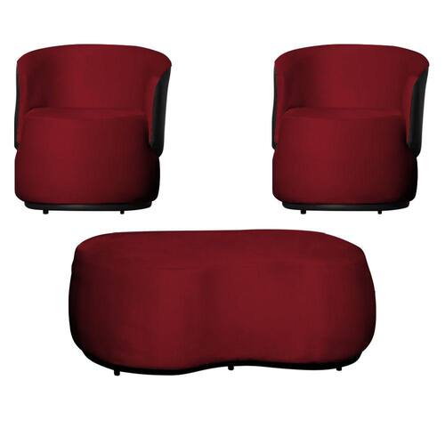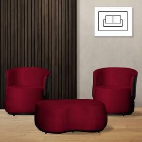 Kit 2 Poltronas e 1 Puff Grande Estilo Orgânico Beatriz Veludo Composê Corino Preto - Estopar - Vermelho