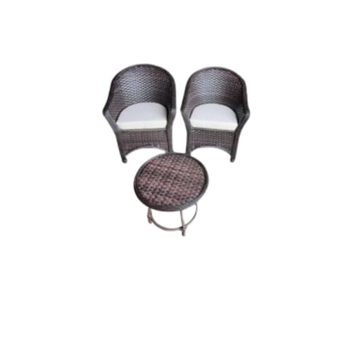 Kit 2 Poltronas E Mesinha De Centro Fibra Sintética - Branco | Bege | Marrom