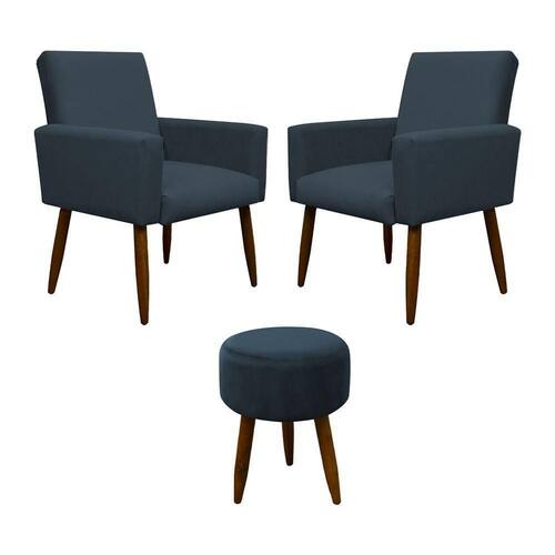 Kit 2 Poltronas E Puff Sala E Quarto Nina Suede Herrero Cor:azul Marinho