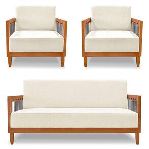 Kit 2 Poltronas e Sofá Living 2 Lugares Marilia 1,60m Linho Base em Madeira Castanho - Pallazio - Nude