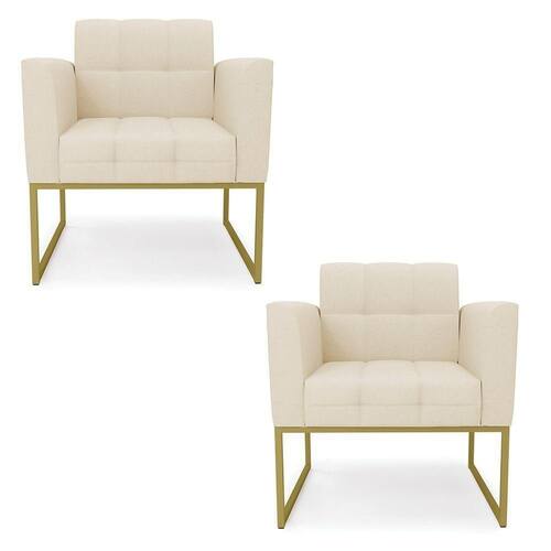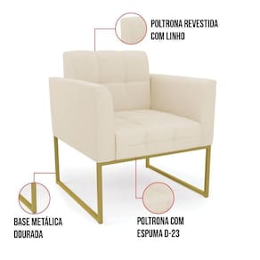 Você gosta de colecionar vários momentos memoráveis com sua família e amigos? Que tal recebê-los, com móveis de altíssima qualidade que só a DRossi tem? O Kit 2 Poltronas Elisa é adequado para você! Seu design retrô é a grande tendência do momento. Pode ser utilizado em diversos espaços da casa, em salas, hall de entrada, quartos, cozinhas, varanda, sacada, escritório, dentre outros. Contém as seguintes características: A estrutura é feita de madeira de Eucalipto 100% de reflorestamento, e a Base Industrial Metálica Dourada, além de ser resistente e durável, suporta em média até 120 kg. Assento, encosto e braços, contém enchimento de espuma D-23 e é estofada em tecido Linho, que oferece muito conforto e resistência ao sentar, com aquela sensação de maciez e aconchego. Possui também, detalhes de costura no encosto e assento, resultando em um acabamento impecável, conferindo muito mais valor e elegância ao seu espaço. Para complementar a decoração com essas lindas poltronas, a dica é utilizar mantas, almofadas ou vasinho de flor. E pronto, seu cantinho estará perfeito para descansar e relaxar! Aqui, você encontra várias opções, para que seus amigos e familiares se sintam acolhidos. Garanta já seu Kit 2 Poltronas.