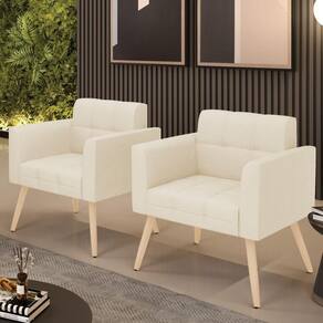 Você gosta de colecionar vários momentos memoráveis com sua família e amigos? Que tal recebê-los, com móveis de altíssima qualidade que só a D'Rossi tem? O Kit 2 Poltronas Elisa é adequado para você! Seu design retrô é a grande tendência do momento. Pode ser utilizado em diversos espaços da casa, em salas, hall de entrada, quartos, cozinhas, varanda, sacada, escritório, dentre outros. Contém as seguintes características: A estrutura é feita de madeira de Eucalipto 100% de reflorestamento, e os Pés Palito Natural, além de serem resistentes e duráveis, suportam em média até 120 kg. Assento, encosto e braços, contém enchimento de espuma D-23 e é estofada em tecido Linho, no tom Bege, que oferece muito conforto e resistência ao sentar, com aquela sensação de maciez e aconchego. Possui também, detalhes de costura no encosto e assento, resultando em um acabamento impecável, conferindo muito mais valor e elegância ao seu espaço. Para complementar a decoração com essas lindas poltronas, a dica é utilizar mantas, almofadas ou vasinho de flor. E pronto, seu cantinho estará perfeito para descansar e relaxar! Aqui, você encontra várias opções, para que seus amigos e familiares se sintam acolhidos. Garanta já seu Kit 2 Poltronas.