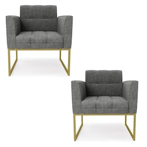 Você gosta de colecionar vários momentos memoráveis com sua família e amigos? Que tal recebê-los, com móveis de altíssima qualidade que só a DRossi tem? O Kit 2 Poltronas Elisa é adequado para você! Seu design retrô é a grande tendência do momento. Pode ser utilizado em diversos espaços da casa, em salas, hall de entrada, quartos, cozinhas, varanda, sacada, escritório, dentre outros. Contém as seguintes características: A estrutura é feita de madeira de Eucalipto 100% de reflorestamento, e a Base Industrial Metálica Dourada, além de ser resistente e durável, suporta em média até 120 kg. Assento, encosto e braços, contém enchimento de espuma D-23 e é estofada em tecido Linho, no tom Grafite, que oferece muito conforto e resistência ao sentar, com aquela sensação de maciez e aconchego. Possui também, detalhes de costura no encosto e assento, resultando em um acabamento impecável, conferindo muito mais valor e elegância ao seu espaço. Para complementar a decoração com essas lindas poltronas, a dica é utilizar mantas, almofadas ou vasinho de flor. E pronto, seu cantinho estará perfeito para descansar e relaxar! Aqui, você encontra várias opções, para que seus amigos e familiares se sintam acolhidos. Garanta já seu Kit 2 Poltronas.