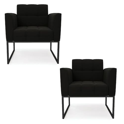Você gosta de colecionar vários momentos memoráveis com sua família e amigos? Que tal recebê-los, com móveis de altíssima qualidade que só a DRossi tem? O Kit 2 Poltronas Elisa é adequado para você! Seu design retrô é a grande tendência do momento. Pode ser utilizado em diversos espaços da casa, em salas, hall de entrada, quartos, cozinhas, varanda, sacada, escritório, dentre outros. Contém as seguintes características: A estrutura é feita de madeira de Eucalipto 100% de reflorestamento, e a Base Industrial Metálica Preto, além de ser resistente e durável, suporta em média até 120 kg. Assento, encosto e braços, contém enchimento de espuma D-23 e é estofada em tecido Suede, que oferece muito conforto e resistência ao sentar, com aquela sensação de maciez e aconchego. Possui também, detalhes de costura no encosto e assento, resultando em um acabamento impecável, conferindo muito mais valor e elegância ao seu espaço. Para complementar a decoração com essas lindas poltronas, a dica é utilizar mantas, almofadas ou vasinho de flor. E pronto, seu cantinho estará perfeito para descansar e relaxar! Aqui, você encontra várias opções, para que seus amigos e familiares se sintam acolhidos. Garanta já seu Kit 2 Poltronas.