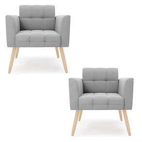 Você gosta de colecionar vários momentos memoráveis com sua família e amigos? Que tal recebê-los, com móveis de altíssima qualidade que só a DRossi tem? O Kit 2 Poltronas Elisa é adequado para você! Seu design retrô é a grande tendência do momento. Pode ser utilizado em diversos espaços da casa, em salas, hall de entrada, quartos, cozinhas, varanda, sacada, escritório, dentre outros. Contém as seguintes características: A estrutura é feita de madeira de Eucalipto 100% de reflorestamento, e os Pés Palito l, além de serem resistentes e duráveis, suportam em média até 120 kg. Assento, encosto e braços, contém enchimento de espuma D-23 e é estofada em tecido Suede, no tom Cinza, que oferece muito conforto e resistência ao sentar, com aquela sensação de maciez e aconchego. Possui também, detalhes de costura no encosto e assento, resultando em um acabamento impecável, conferindo muito mais valor e elegância ao seu espaço. Para complementar a decoração com essas lindas poltronas, a dica é utilizar mantas, almofadas ou vasinho de flor. E pronto, seu cantinho estará perfeito para descansar e relaxar! Aqui, você encontra várias opções, para que seus amigos e familiares se sintam acolhidos. Garanta já seu Kit 2 Poltronas.