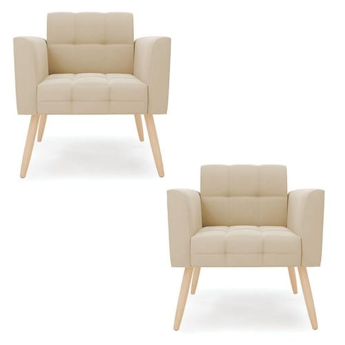 Kit 2 Poltronas Elisa Suede Pés Palito l - D'rossi Cor Bege