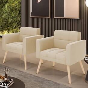 Kit 2 Poltronas Elisa Suede Pés Palito Natural - D`rossi Cor Bege - Blush