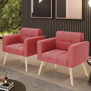 Você gosta de colecionar vários momentos memoráveis com sua família e amigos? Que tal recebê-los, com móveis de altíssima qualidade que só a DRossi tem? O Kit 2 Poltronas Elisa é adequado para você! Seu design retrô é a grande tendência do momento. Pode ser utilizado em diversos espaços da casa, em salas, hall de entrada, quartos, cozinhas, varanda, sacada, escritório, dentre outros. Contém as seguintes características: A estrutura é feita de madeira de Eucalipto 100% de reflorestamento, e os Pés Palito l, além de serem resistentes e duráveis, suportam em média até 120 kg. Assento, encosto e braços, contém enchimento de espuma D-23 e é estofada em tecido Suede, que oferece muito conforto e resistência ao sentar, com aquela sensação de maciez e aconchego. Possui também, detalhes de costura no encosto e assento, resultando em um acabamento impecável, conferindo muito mais valor e elegância ao seu espaço. Para complementar a decoração com essas lindas poltronas, a dica é utilizar mantas, almofadas ou vasinho de flor. E pronto, seu cantinho estará perfeito para descansar e relaxar! Aqui, você encontra várias opções, para que seus amigos e familiares se sintam acolhidos. Garanta já seu Kit 2 Poltronas.