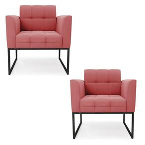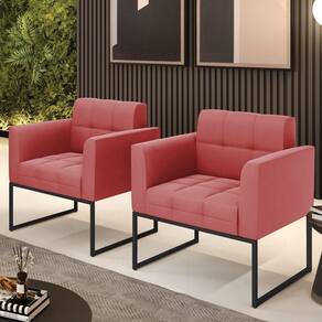 Kit 2 Poltronas Elisa Suede Rosê Base Metálica Industrial Preto - D'rossi