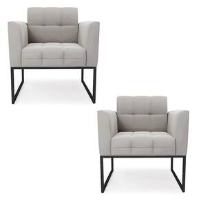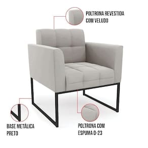 Kit 2 Poltronas Elisa Veludo Base Metálica Industrial Preto - D'rossi Cor Cinza