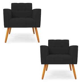 Kit 2 Poltronas Elisa Veludo Pés Palito Castanho - D'rossi Cor Preto