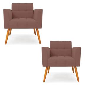 Kit 2 Poltronas Elisa Veludo Pés Palito Castanho - D'rossi Cor Rose